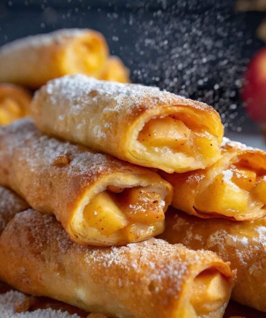 Spiced apples are folded up with cream cheese and cinnamon/sugar inside an egg roll wrapper, then baked. Ingredients: 5 medium-sized…
